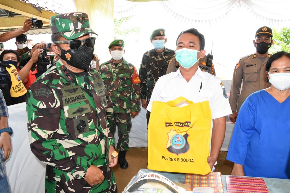 Pada kegiatan yang menerapkan protokol kesehatan tersebut, Pangdam dan Kapoldasu memberikan bantuan kepada para tenaga kesehatan, Babinsa, Bhabinkamtibmas dan Dinas kesehatan. (Dispenad)